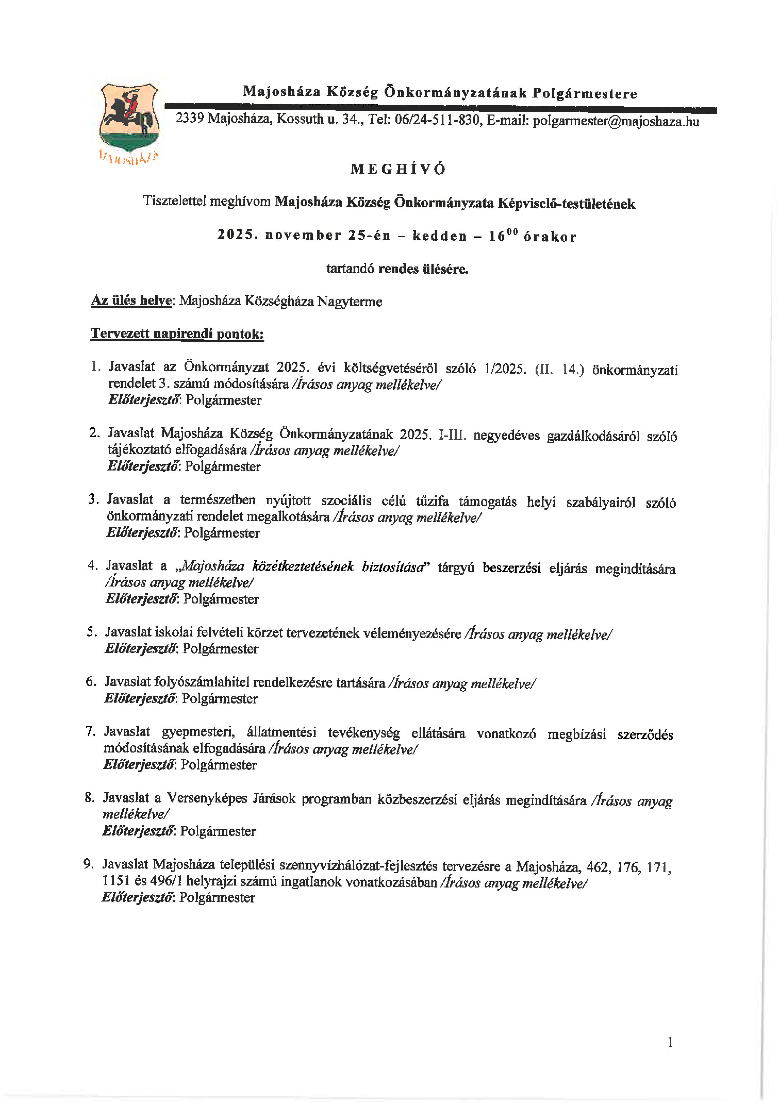 - 2. napirendi javaslat Majosháza Község Önkormányzatának 2025. I-III. negyedéves gazdálkodásáról szóló tájékoztató elfogadására